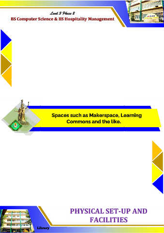 Level 3 Phase 2 BS Computer Science & BS Hospitality Management Spaces such as Makerspace, Learning Commons and the like. PHYSICAL SET-UP AND FACILITIES Library