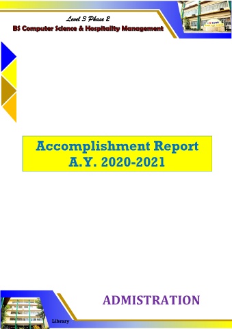 Level 3 Phase 2 BS Computer Science & Hospitality Management Accomplishment Report A.Y. 2020-2021 ADMISTRATION Library