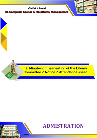 Level 3 Phase 2 BS Computer Science & Hospitality Management 2. Minutes of the meeting of the Library Committee / Notice / Attendance sheet ADMISTRATION Library