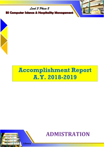 Level 3 Phase 2 BS Computer Science & Hospitality Management Accomplishment Report A.Y. 2018-2019 ADMISTRATION Library
