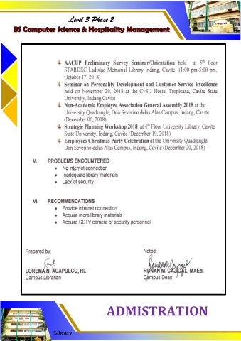 Level 3 Phase 2 BS Computer Science & Hospitality Management ADMISTRATION Library
