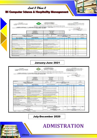 Level 3 Phase 2 BS Computer Science & Hospitality Management January-June 2021 July-December 2020 ADMISTRATION Library