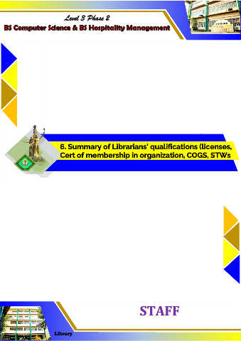 Level 3 Phase 2 6. Summary of Librarians’ qualifications (licenses, Cert of membership in organization, COGS, STWs STAFF Library