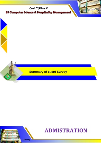 Level 3 Phase 2 BS Computer Science & Hospitality Management Summary of client Survey ADMISTRATION Library