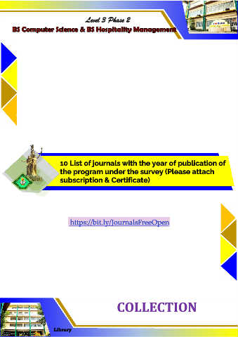 Level 3 Phase 2 10 List of journals with the year of publication of the program under the survey (Please attach subscription & Certificate) https://bit.ly/JournalsFreeOpen COLLECTION Library