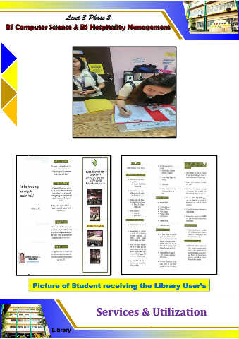 Level 3 Phase 2 Picture of Student receiving the Library User’s Guide Services & Utilization L Library