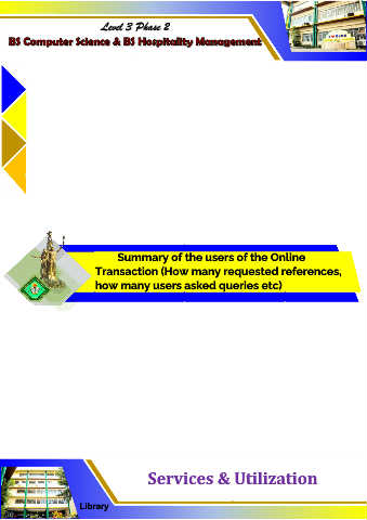Level 3 Phase 2 Summary of the users of the Online Transaction (How many requested references, how many users asked queries etc) Services & Utilization L Library