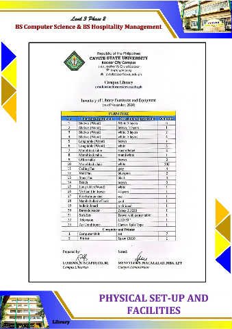 Level 3 Phase 2 BS Computer Science & BS Hospitality Management PHYSICAL SET-UP AND FACILITIES Library