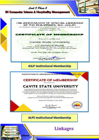 Level 3 Phase 2 BS Computer Science & Hospitality Management ASLP Institutional Membership ALPS Institutional Membership Linkages Library
