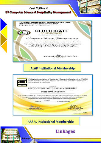Level 3 Phase 2 BS Computer Science & Hospitality Management ALAP Institutional Membership PAARL Institutional Membership Linkages Library