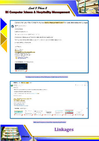 Level 3 Phase 2 BS Computer Science & Hospitality Management Development Academy of the Philippines (QMS Manual for the SUCs) FNRI email response about the requested publication Linkages Library
