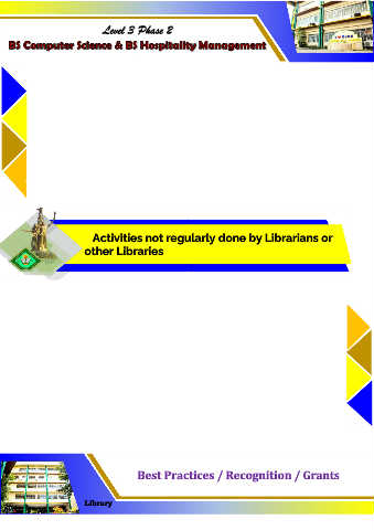 Level 3 Phase 2 Activities not regularly done by Librarians or other Libraries Best Practices / Recognition / Grants Library