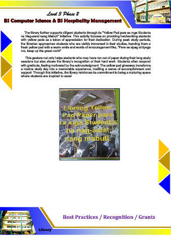 The library further supports diligent students through its "Yellow Pad para sa mga Students