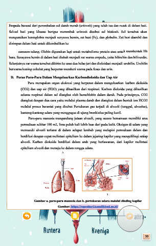 Gambar a. paru-paru manusia dan b. pertukaran udara melalui dinding kapiler