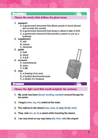 1. My uncle has been (travel, traveling, traveled) around Europe for