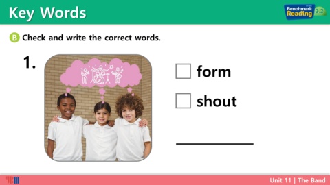 Key Words B Check and write the correct words. 1. form shout Unit 11 | The Band