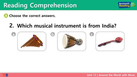Reading Comprehension A Choose the correct answers. 2. Which musical instrument is from India? a b c Unit 12 | Around the World with Music