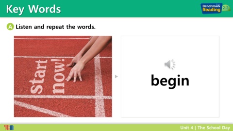 Key Words A Listen and repeat the words. begin Unit 4 | The School Day