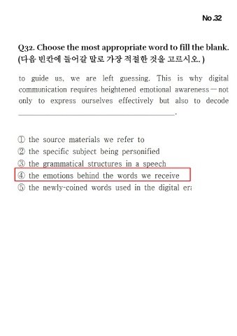 No .32 Q32. Choose the most appropriate word to fill the blank. (다음 빈칸에 들어갈 말로 가장 적절한 것을 고르시오. )