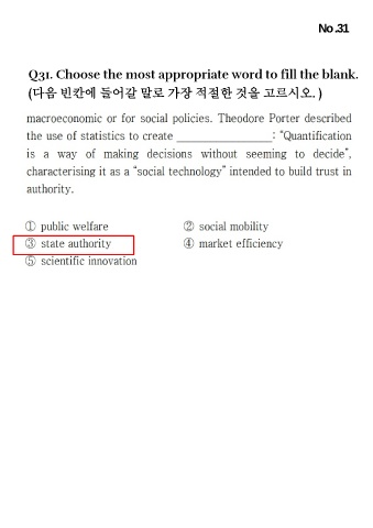 No .31 Q31. Choose the most appropriate word to fill the blank. (다음 빈칸에 들어갈 말로 가장 적절한 것을 고르시오. )