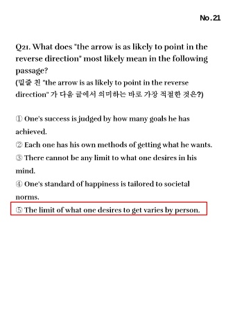 Q21. What does "the arrow is as likely to point in the