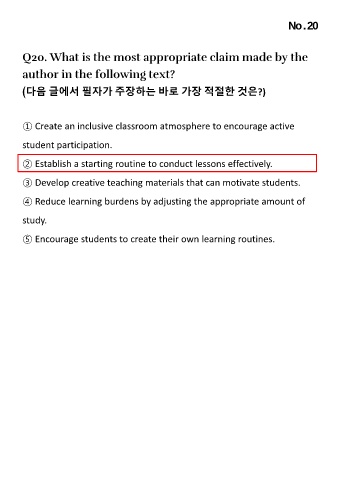 Q20. What is the most appropriate claim made by the