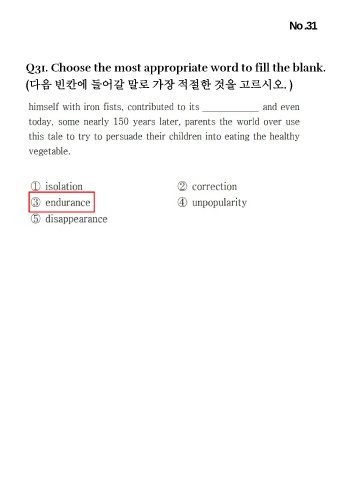 No .31 Q31. Choose the most appropriate word to fill the blank. (다음 빈칸에 들어갈 말로 가장 적절한 것을 고르시오. )