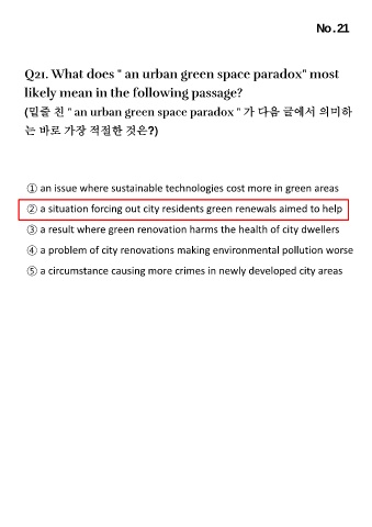 (밑줄 친 " an urban green space paradox " 가 다음 글에서 의미하