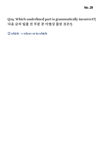 No . 29 Q29. Which underlined part is grammatically incorrect?( 다음 글의 밑줄 친 부분 중 어법상 틀린 것은?) ②which -> where or in which