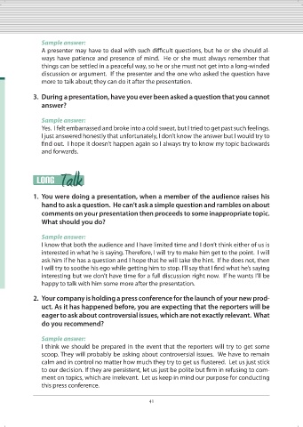A presenter may have to deal with such difficult questions, but he or she should al-