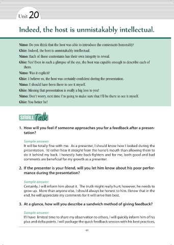 1. How will you feel if someone approaches you for a feedback after a presen-
