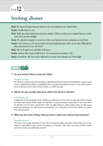 Park: Well, since the contract has just been sealed, I’d like to invite you to a typical Korean restau-