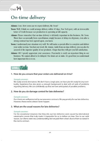 Adams: I see. How soon can we expect delivery, Mr. Yoon?