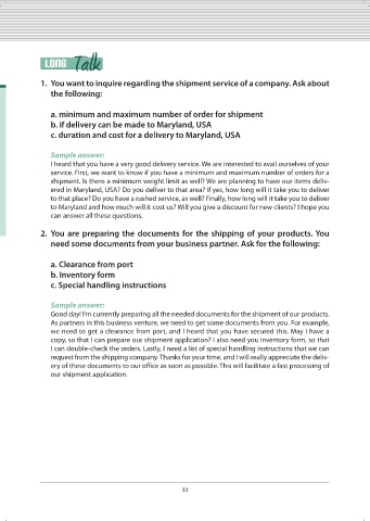 1. You want to inquire regarding the shipment service of a company. Ask about