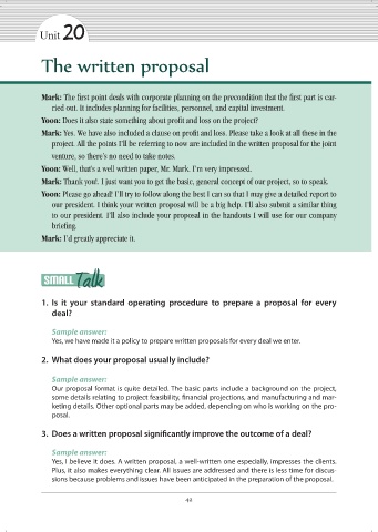 Yes, we have made it a policy to prepare written proposals for every deal we enter.
