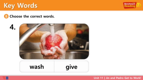 Key Words B Choose the correct words. 4. wash give Unit 11 | Jin and Pedro Get to Work!