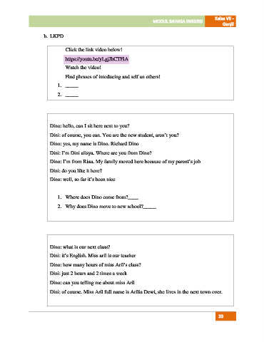 Dini: of course. Miss Aril full name is Arilia Dewi, she lives in the next town over.