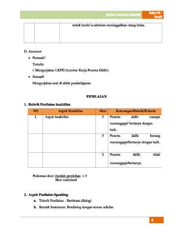 a. Teknik Penilaian : Berbicara (dialog)