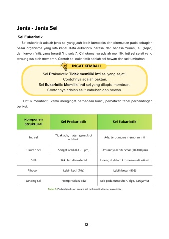Tabel 1: Perbedaan kunci antara sel prokariotik dan sel eukariotik