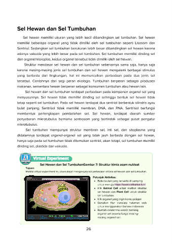 Melalui virtual experiment ini, siswa dapat mengeksplorasi perbedaan antara sel hewan dan sel tumbuhan.