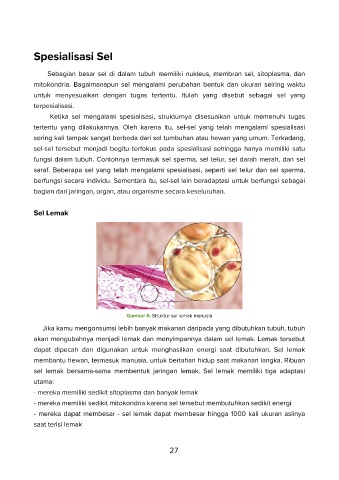 sel lemak bersama-sama membentuk jaringan lemak. Sel lemak memiliki tiga adaptasi