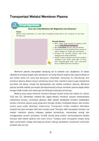 Melalui virtual experiment ini, siswa dapat mengamati proses keluar dan masuknya zat ke dalam
