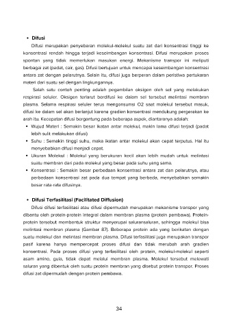 suatu molekul dan melintasi membran plasma. Difusi terfasilitasi juga merupakan transpor