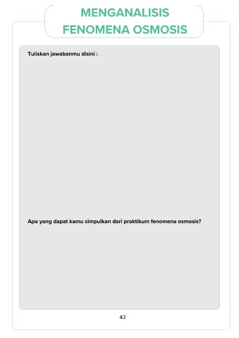 MENGANALISIS FENOMENA OSMOSIS Tuliskan jawabanmu disini : Apa yang dapat kamu simpulkan dari praktikum fenomena osmosis? 43