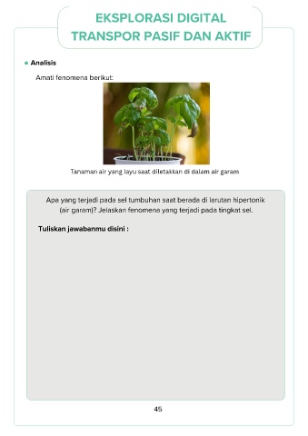 Tanaman air yang layu saat diletakkan di dalam air garam