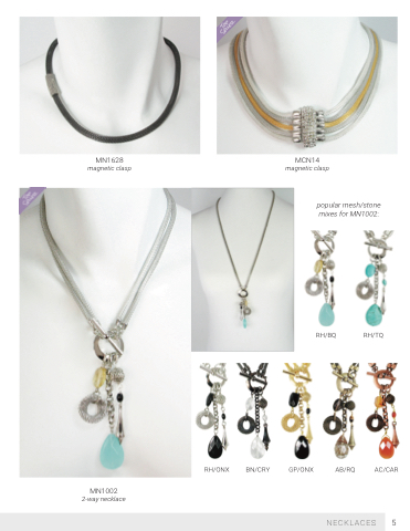 MN1628 magnetic clasp MCN14 magnetic clasp MN1002 2-way necklace RH/ONX BN/CRY GP/ONX popular mesh/stone mixes for MN1002: RH/BQ RH/TQ AB/RQ AC/CAR 5 NECKLACES