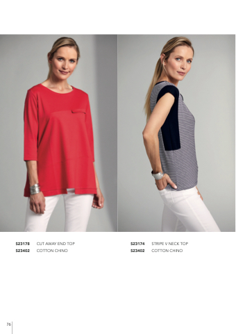76 S23178 CUT AWAY END TOP S23174 STRIPE V NECK TOP S23402 COTTON CHINO S23402 COTTON CHINO