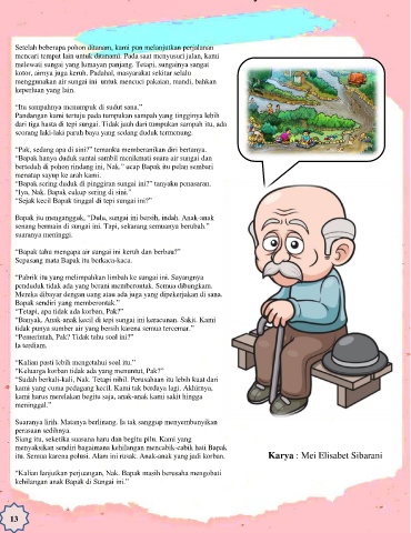 Bapak itu mengangguk, “Dulu, sungai ini bersih, indah. Anak-anak