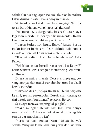 “Hai Beruk. Kau dengar aku bicara?” kata Buaya