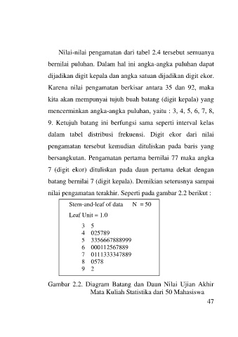 Gambar 2.2. Diagram Batang dan Daun Nilai Ujian Akhir